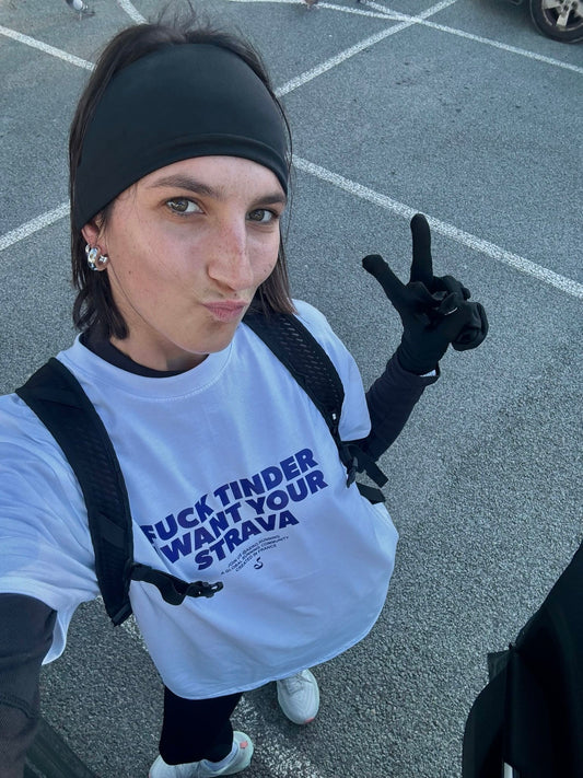 T-shirt Blanc "Fuck Tinder I want your Strava"